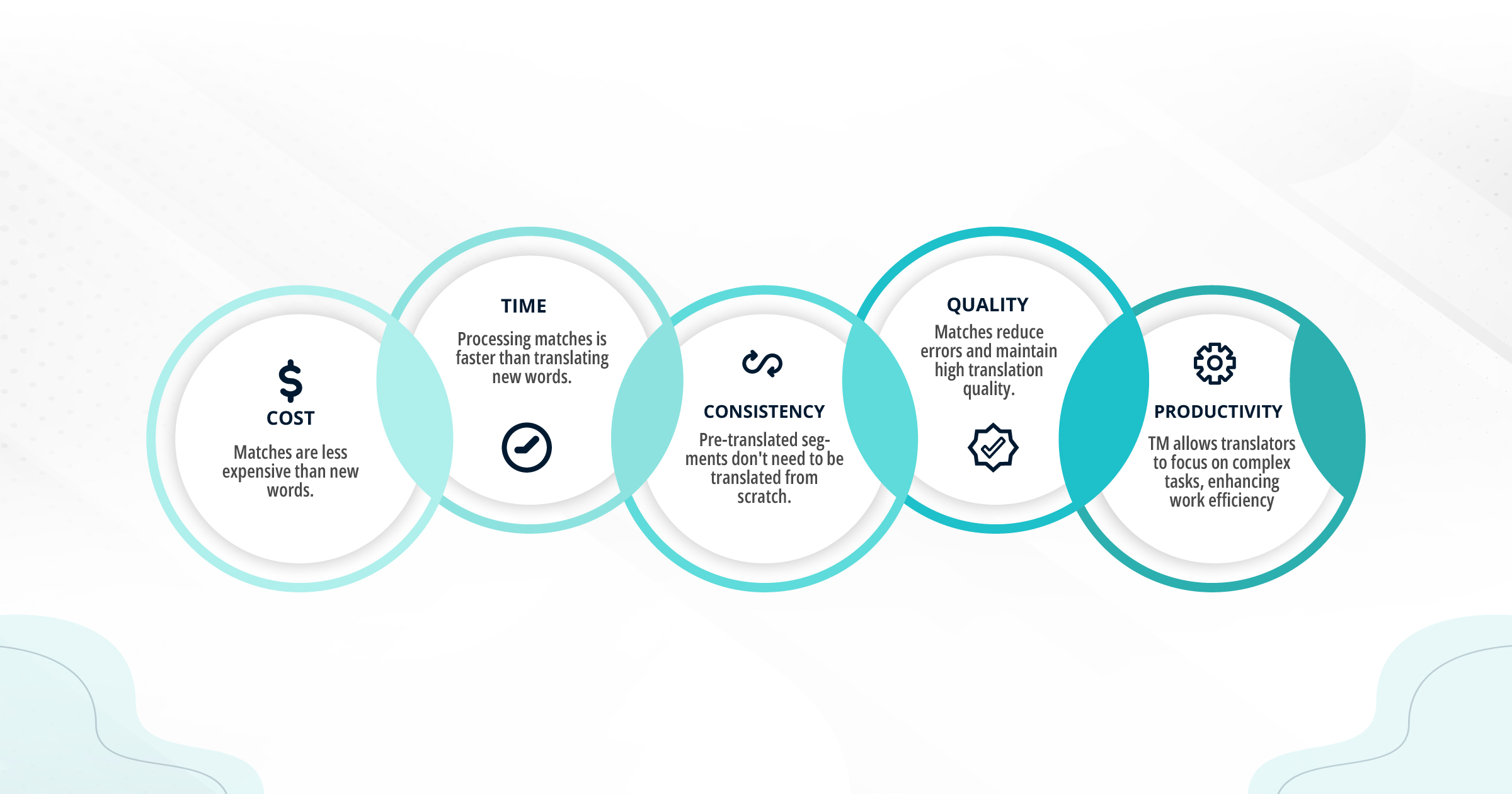- Cost Saving: It can help reduce translation costs by reusing existing translations and minimizing the amount of new text that needs to be translated for projects with repetitive elements, which is definitely great for you as a client, especially with high-volume projects.